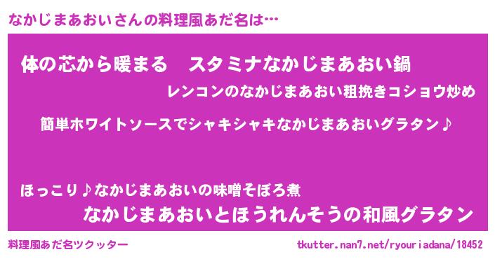| ポケモン風あだ名 | 『ヒナカジマアオイ』『ナカジダネ』 |