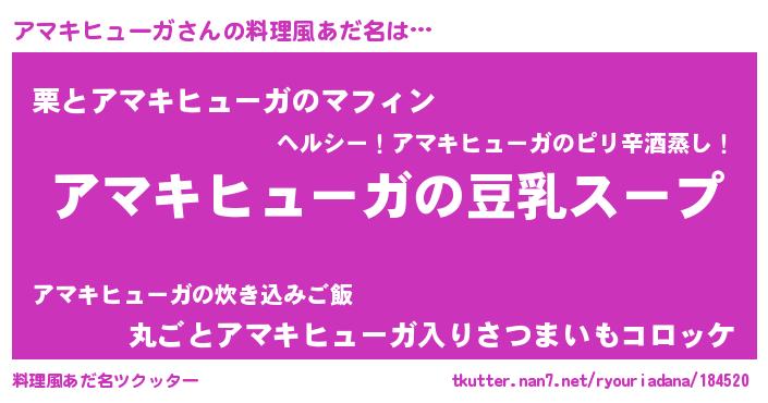 | 胡散臭い通販商品みたいなあだ名 | 『信頼と実績のサプリメント…その名も「アマキヒューガ」』 |