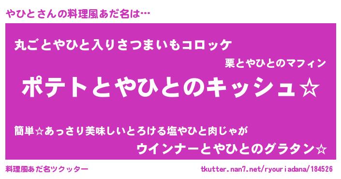| ヒーロー風カッコイイあだ名 | 『魔戒騎士ヤヒ』『仮面ヤヒダー』 |