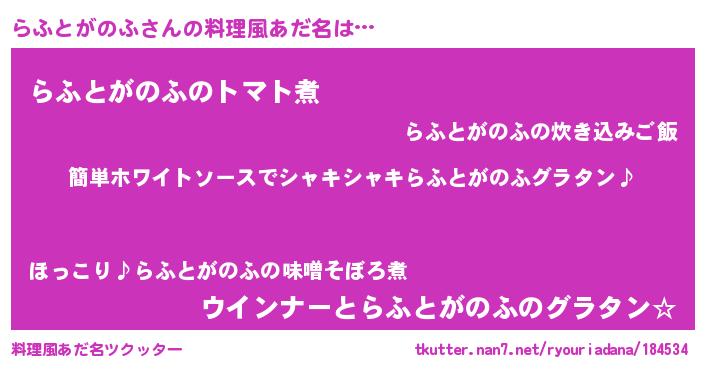 | 女子向けラノベタイトル風あだ名 | 『らふとがのふ様がみてる』 |