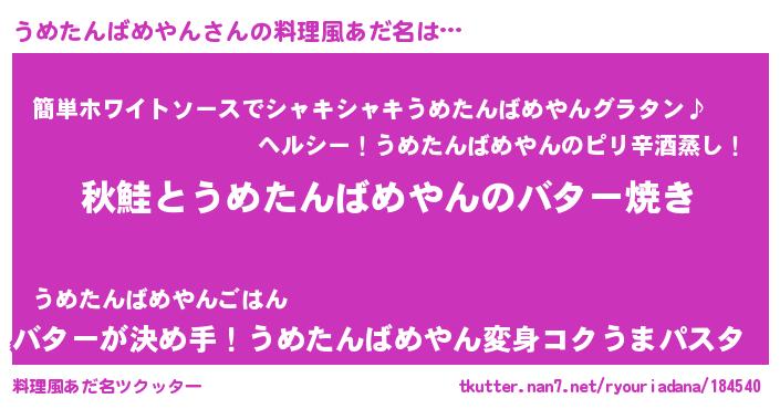 | 男性向けラノベタイトル風あだ名 | 『うめたんばめやんという概念が存在しない退屈な世界 』 |