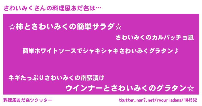 | 胡散臭い通販商品みたいなあだ名 | 『全米が絶賛したサプリメント…その名も「さわいみく」』 |