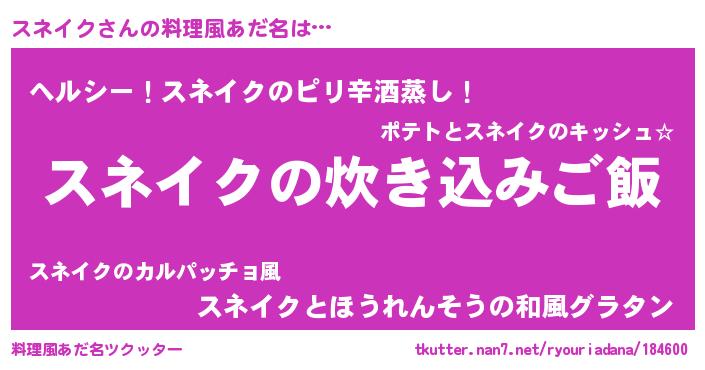 | ヒーロー風カッコイイあだ名 | 『究極戦士スネイク』『銀牙騎士スネ』 |