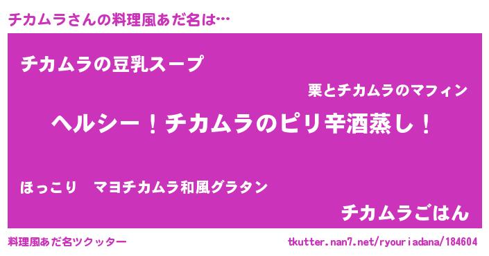 | 意味不明あだ名 | 『自称チカムラ』『たけのこ科チカムラ属』 |