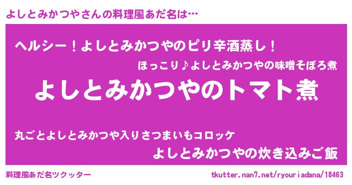 | ヘコむあだ名 | 『よしにゅー』『よしとみかつや(小並感)』 |