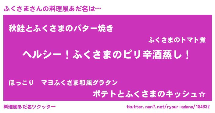 | 意味不明あだ名 | 『自称ふくさま』『永久保存ふくさま』 |