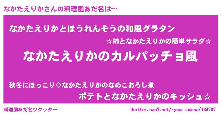 | 女子向けラノベタイトル風あだ名 | 『なかたえりかが死なない童話 林檎のなかたえりかの診療簿』 |