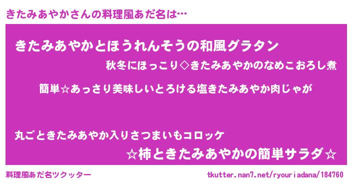 | ヘコむあだ名 | 『きたみあやか(震え声)』『きたっ子』 |
