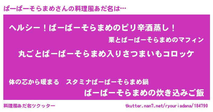 | 欧米人風あだ名 | 『ダレノガレばーばーそらまめ』 |