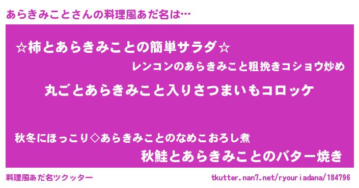 | ヘコむあだ名 | 『あらきみこと(苦笑)』『あらぷりん』 |