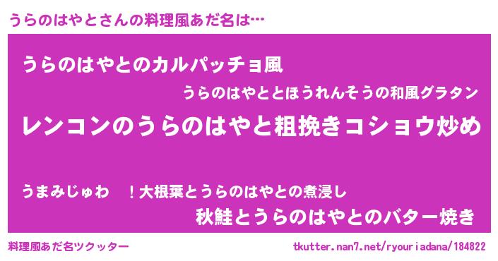 | 意味不明あだ名 | 『自称うらのはやと』 |