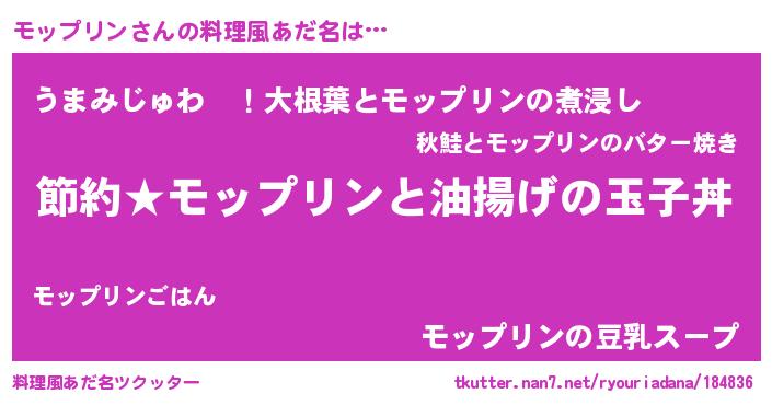 | 男性向けラノベタイトル風あだ名 | 『モップリンの憂鬱』 |