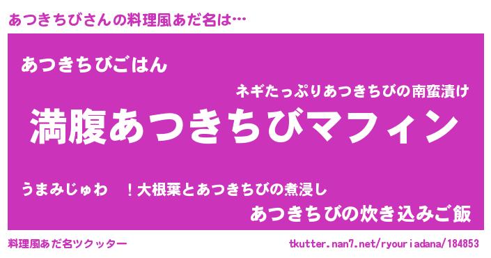 | 女子向けラノベタイトル風あだ名 | 『異世界で失敗しない100のあつきちび』 |