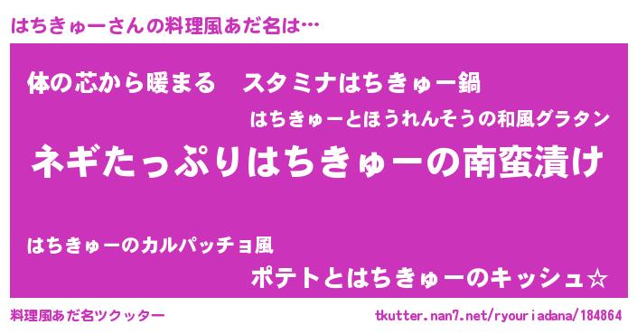 | ファンタジー風あだ名 | 『ハチフェル』『エターナルハチキューー』 |