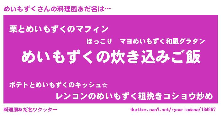 | 意味不明あだ名 | 『自称めいもずく』『永久保存めいもずく』 |