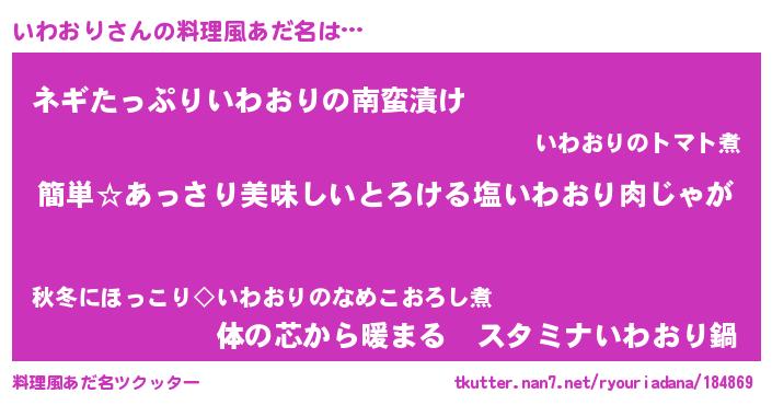 | 意味不明あだ名 | 『永久保存いわおり』『ペロリンいわおり』 |