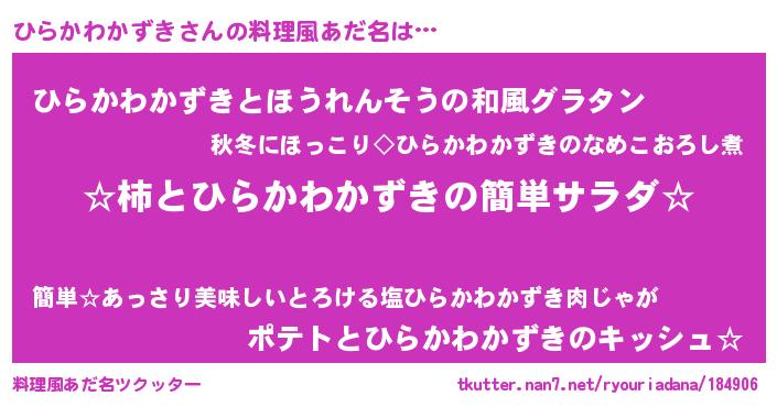 | ヘコむあだ名 | 『ひらっぺ』『ひらかわかずき(震え声)』 |
