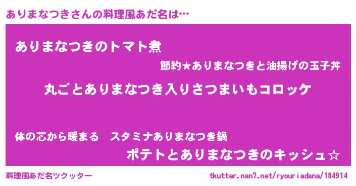 | 胡散臭い通販商品みたいなあだ名 | 『世界中を虜にした世界で10本だけ現存している希少なブランデー…その名も「ありまなつき」』 |