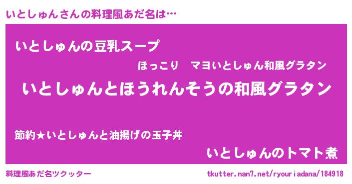 | ヒーロー風カッコイイあだ名 | 『炎刃騎士イト』『友情の使者いとしゅん』 |