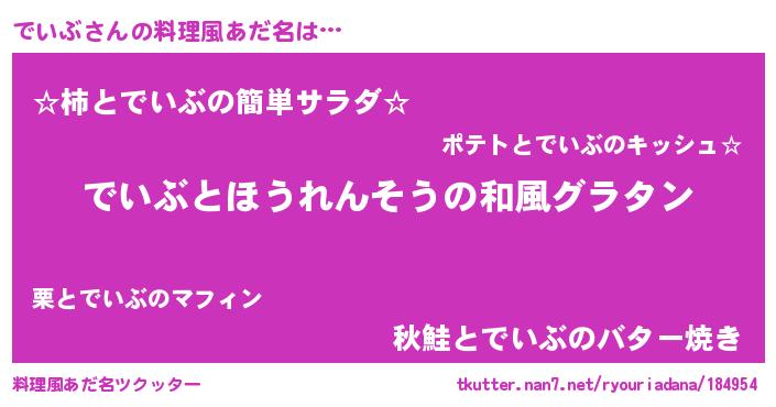 | 胡散臭い通販商品みたいなあだ名 | 『前代未聞の健康食品…その名も「でいぶ」』 |