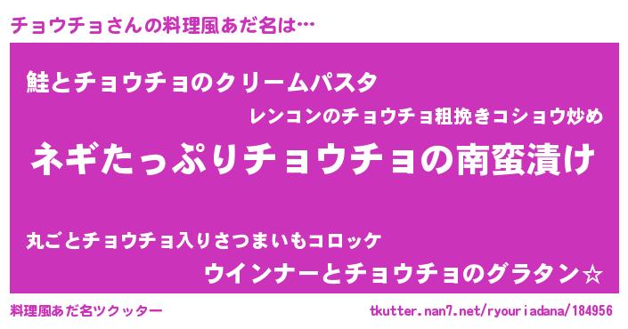 | 2回繰り返すあだ名 | 『チョチョ』『ぽそぽそ』『チチョョ』 |