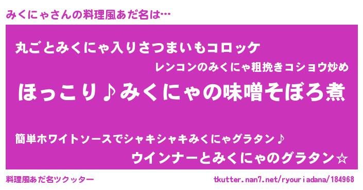 | 欧米人風あだ名 | 『マイケルみくにゃ』『ウサインみくにゃ』 |