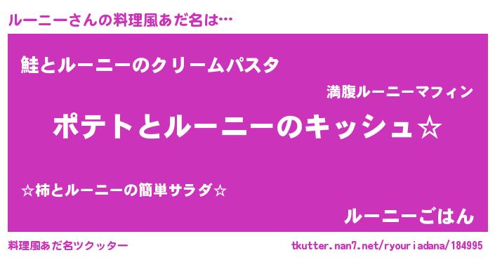 | 女子向けラノベタイトル風あだ名 | 『ルーニーの卵を拾いまして』 |