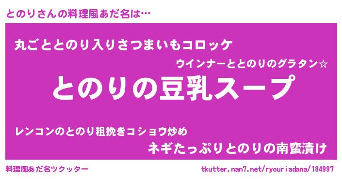 | 胡散臭い通販商品みたいなあだ名 | 『信頼と実績のサプリメント…その名も「とのり」』 |