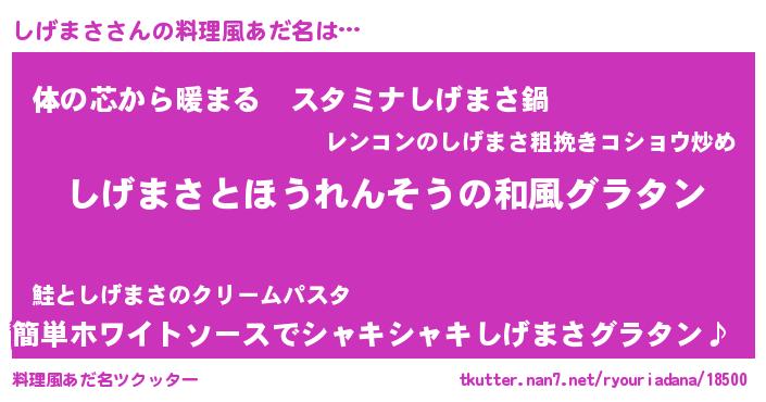 | ヘコむあだ名 | 『なまこ酢』『しげっ子』『しげにー』 |