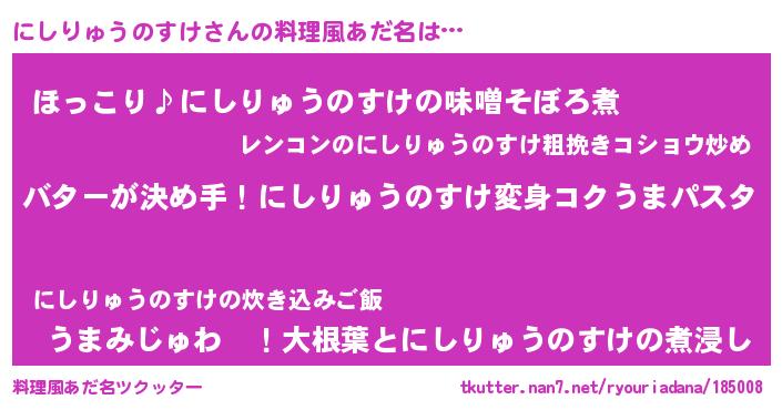 | 男性向けラノベタイトル風あだ名 | 『ノーゲーム・ノーニシリュウノスケ』 |