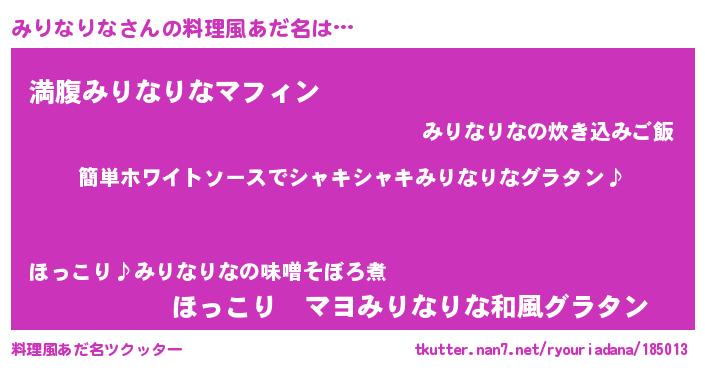 | ヘコむあだ名 | 『みりっちょ』『みりなりな(震え声)』 |