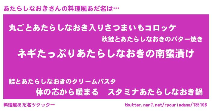 | 男性向けラノベタイトル風あだ名 | 『アタラシナオキアートオンライン』 |