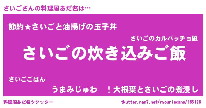| ヒーロー風カッコイイあだ名 | 『スーパーサイゴ』『ウルトラさいごマン』 |