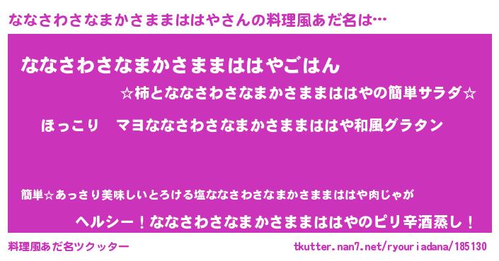 | ヘコむあだ名 | 『ななさわさなまかさままははや(笑)』 |