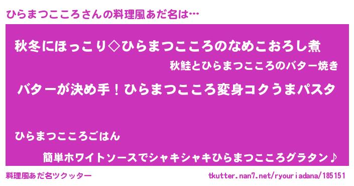 | 女子向けラノベタイトル風あだ名 | 『ひらまつこころ恋絵巻』 |