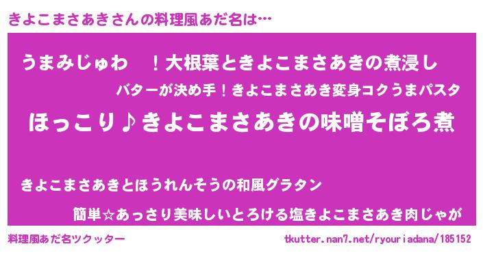 | 女子向けラノベタイトル風あだ名 | 『(仮)きよこまさあきのやんごとなき事情』 |