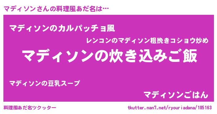 | 意味不明あだ名 | 『住所不定無職マディソン(84歳)』 |