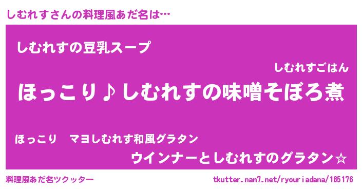 | 男性向けラノベタイトル風あだ名 | 『しむれすの憂鬱』 |
