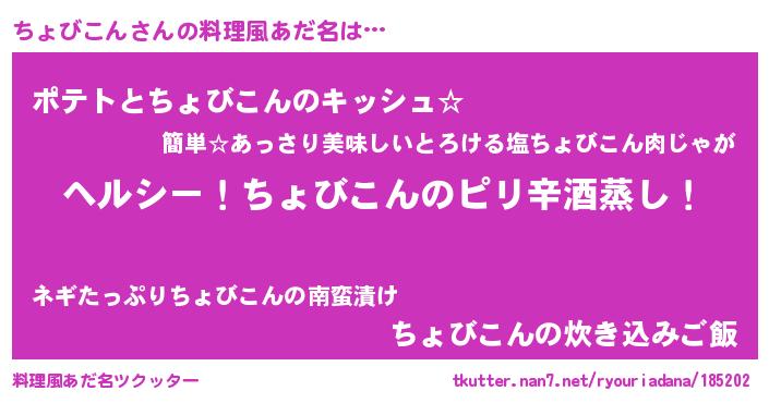 | 意味不明あだ名 | 『自称ちょびこん』『永久保存ちょびこん』 |