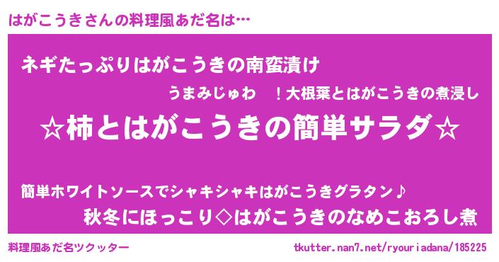 | ヘコむあだ名 | 『はがにゅー』『レバニラ』 |