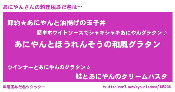 | ヘコむあだ名 | 『あににゅー』『あにお』『酢こんぶ』 |