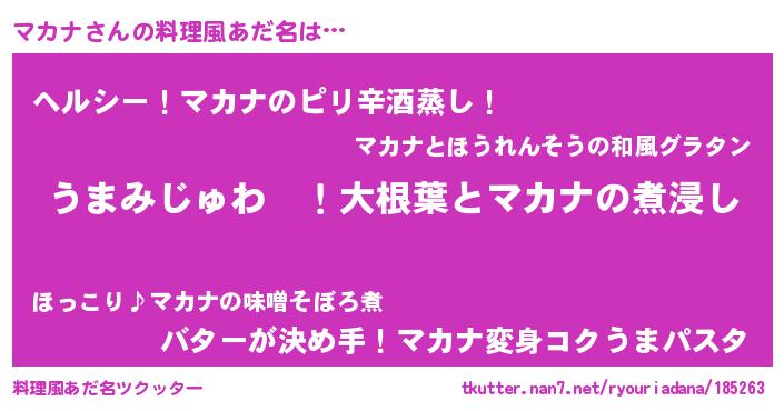 | ヒーロー風カッコイイあだ名 | 『ウルトラマカナマン』『最強戦士マカナ』 |