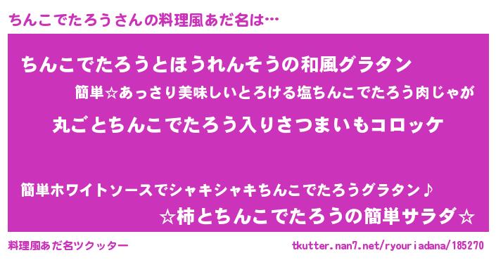 | 意味不明あだ名 | 『住所不定無職ちんこでたろう(1歳)』 |