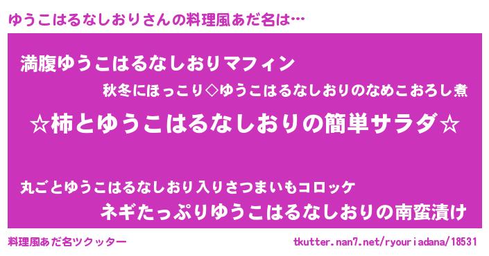 | ヘコむあだ名 | 『ゆうこはるなしおり(笑)』『ゆうにゅー』 |