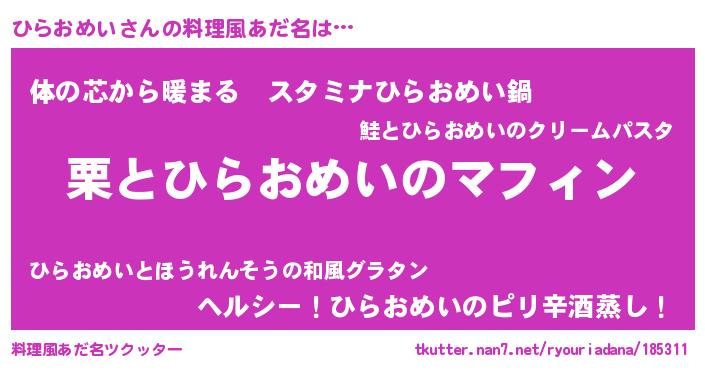 | ポケモン風あだ名 | 『ヒラゴンZ』『ヒラオダネ』 |