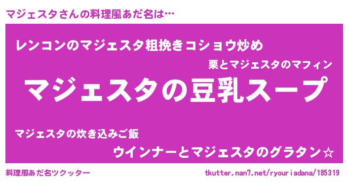 | 胡散臭い通販商品みたいなあだ名 | 『信頼と実績のサプリメント…その名も「マジェスタ」』 |
