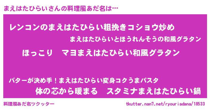 | 意味不明あだ名 | 『住所不定無職まえはたひらい(1歳)』 |