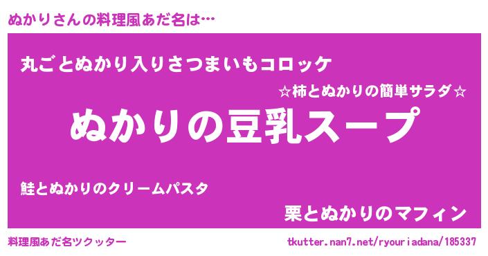 | 胡散臭い通販商品みたいなあだ名 | 『信頼と実績のサプリメント…その名も「ぬかり」』 |