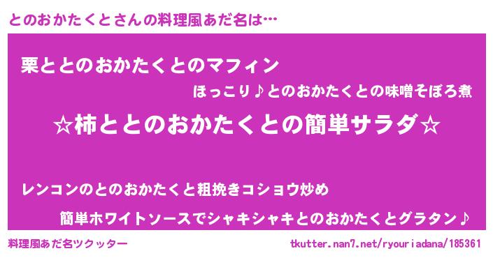 | 胡散臭い通販商品みたいなあだ名 | 『信頼と実績のサプリメント…その名も「とのおかたくと」』 |