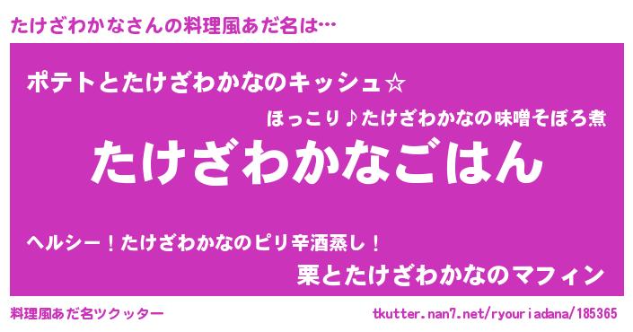 | ポケモン風あだ名 | 『タケキング』『ヒタケザワカナ』 |